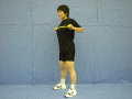 [1. 体側のストレッチ] [2. 背中と胸のストレッチ] [3. 肘上げ] [4. 首の後おろし] [フレーム] [ホーム] [メニュー]